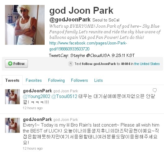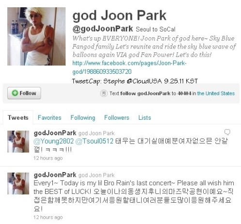 (Tweet and Image source: 29rain @Twitter, 9.25.11 / English translation by rain bird @rain-eu.)