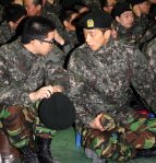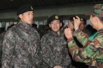 And yes, the military will do what they need to do in order to keep a good face on military service and they want famous, recognizable faces doing the job. But these men bust their butts while they are serving. Boot is tough. But imagine that your life is going EXACTLY as you always hoped it would, imagine that your dream is coming true, and you have to put it on hold for 2 years. You are no longer your own person and you cannot do as you wish, when you wish. It must be frustrating. But in spite of that it has been a joy to see these celebrities, these “softie boys”, kicking ass and taking names during their service. Jun Ki alone has attained many marksmanship awards and even received the Directors award at the end of boot. (the only celeb to do so, or so we have been told) He is now Squad Leader, as evidenced by the bright green shoulder boards that he wears. We are very proud of his achievements. I am sure Bi has some in his future as well. I wish him great success and a sense of achievement that he has not felt before. I saw the video of the line up a few minutes ago……… He is a freakin’ colossus compared to the other soldiers around him. We know how how much drive and determination he has. I have no doubt he will excel in all he does.