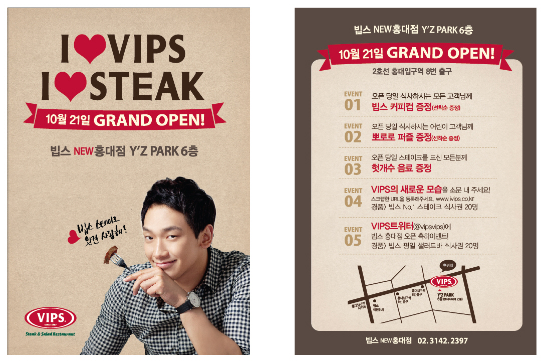 VIPS is opening a new restaurant at a new location, and Rain may not be able to be there in person, but he sure will be there in spirit. Love it. 🙂