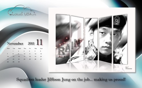 As you can see, Cloud Cerine of the RAIN Fanart blog hit it out of the ballpark so well with one of her recruit JiHoon/Rain fan arts, I just had to use it for our calendar this month. I simply could not resist. Thanks for sharing your beautiful work, Cerine. 🙂