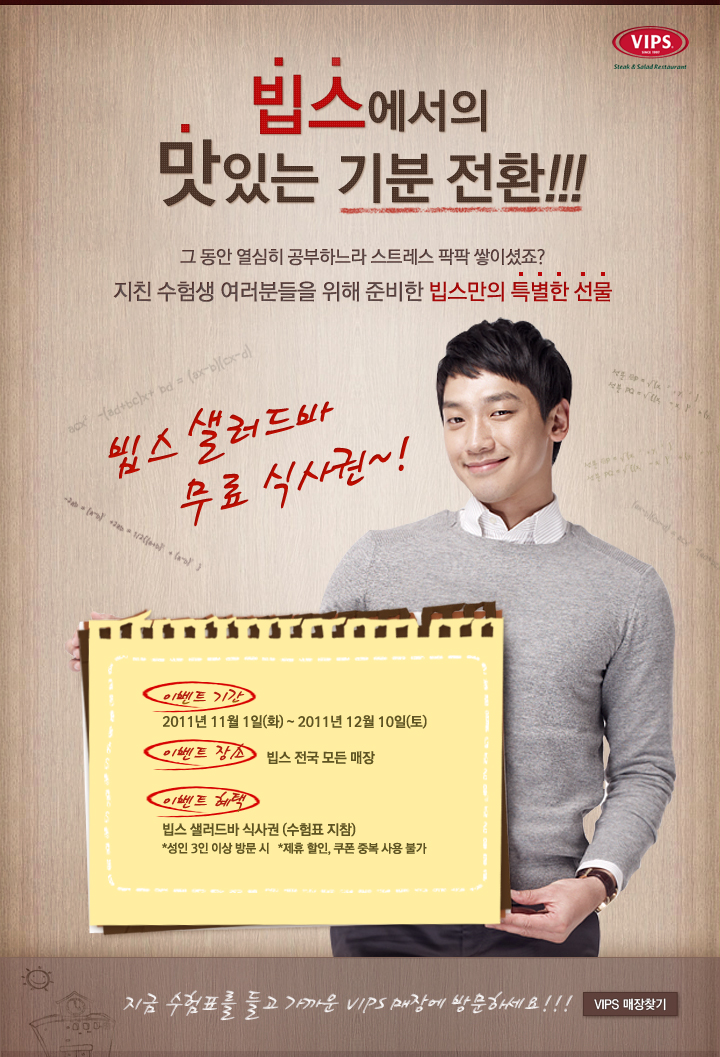 Ah! Fresh Rain from sponsor VIPS, Korea’s Number 1 Steak house. And a new event for customers in Korea…
