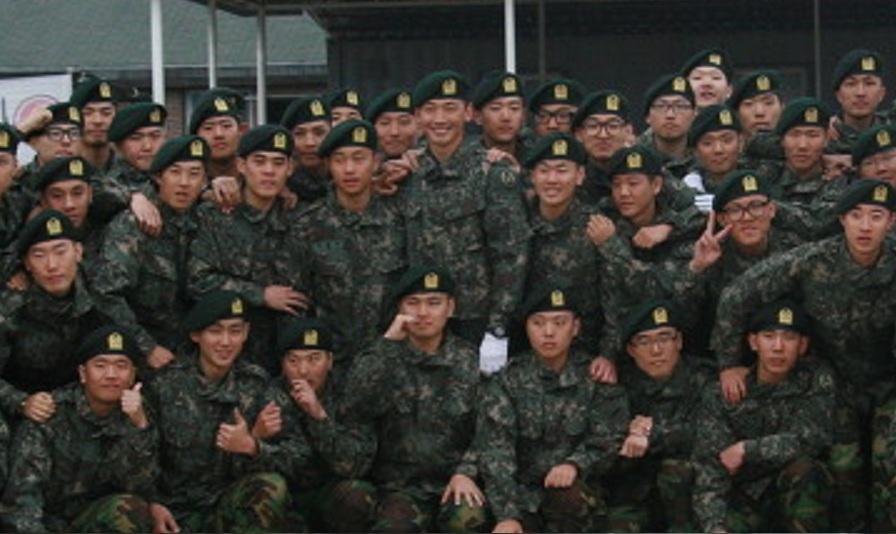 A closer POV of JiHoon and his recruit-mates in their boot camp graduation picture, compliments of RainLoveSong.