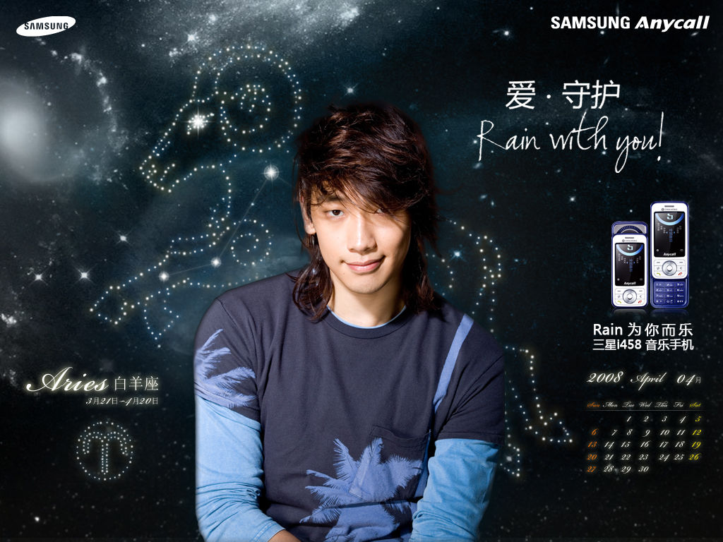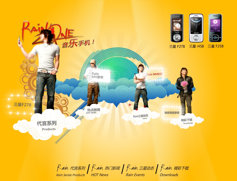 And guess what? The old Rain/Samsung Anycall interactive website still up! The wallpapers don’t seem to be downloadable anymore, but everything else including the videos is working. To see how adorable he is, and have a bit of fun in the Samsung RainZone, just go HERE.