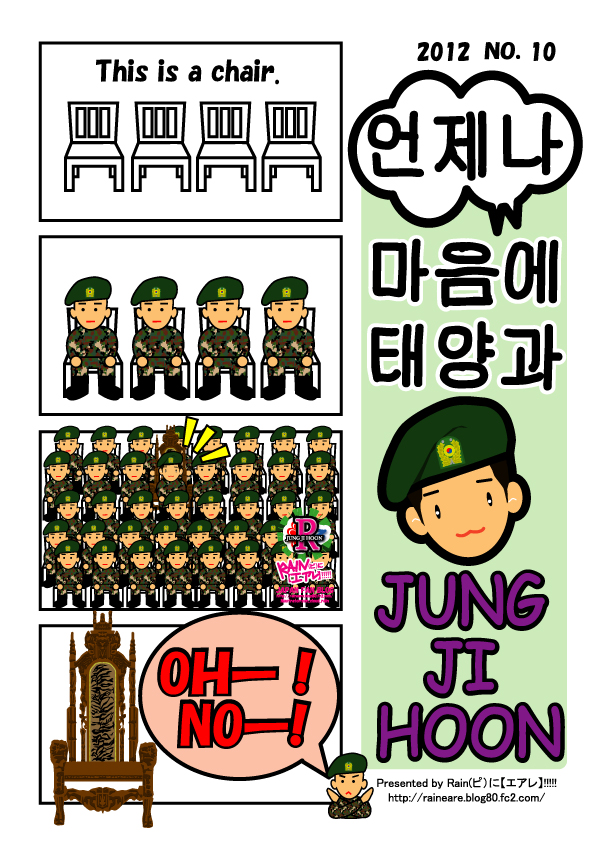 i love the comic they make for our Private JI_Hoon it so inspire the all his region fan make this for rain just a special fan & cloud Rain have all over that prince chair must from THE BEST SHOW where he INTRO are very love the INTRO it was the best electrifying creative rain did ever ahahah