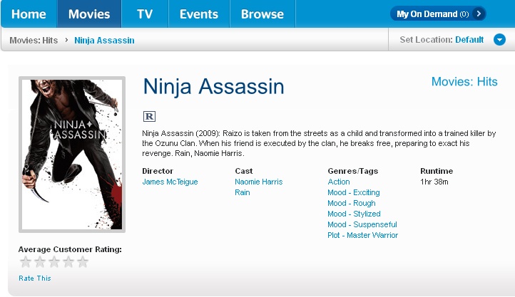 Even if you don’t have Ninja Assassin on DVD or Blu-Ray, you can still watch it whenever you want On Demand on many cable and satellite networks in countries across the globe. So go ahead and get yourself regularly Raizo’d (sliced and diced).