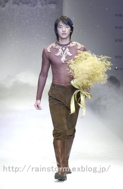 (In his 2002 debut year, Baby 비 strolls the runway as a winter wonderland groom for the late renowned designer Andre Kim.)