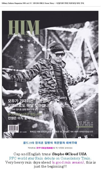 You can see the May 21 post announcing Rain’s cover and feature story on HIM’s online site HERE ( http://himnanum.tistory.com/240 ). Don’t forget to scroll down the page to the little blue and white hand and CLICK on it to “like” the page. Thanks!