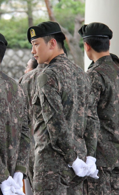 Rain, Yoo Gun, and their fellow soldiers at the Radienteering Competition Event at Seoul National Cemetery. Of course the Fabulous Ones were there to back Rain up. (Images: as tagged, plus Media)