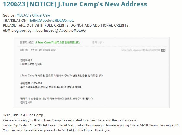 [info] MBLAQ check: J.Tune Camp has a new address.