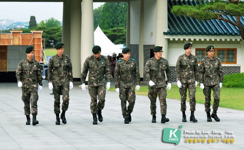 Rain, KCM, Yoo Geon, and their fellow troops in fresh imagery from the Radienteering Event in Seoul on June 22, courtesy of Lee Dong Hee @DEMA.tistory/Harmony Blog. I’d love to know what rank Geon is, with that fancy green color across his shoulders… should be up there a bit, as he’s been in close to two years… ^@@^