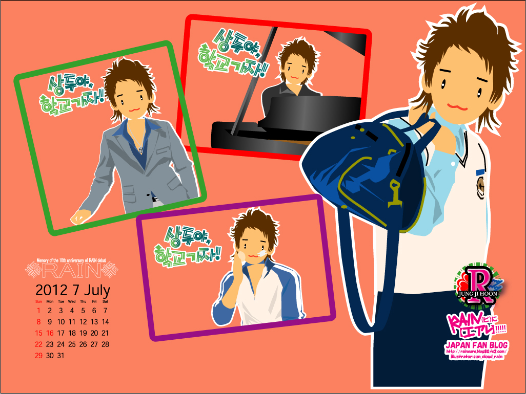 This month’s themes are: A past Rain fashion photo shoot in Spain, Rain The BEST Show, Rain photo shoot for ELLE China, official website images, Rain in SangDoo, Let’s Go To School!, and Rain performs in the military. Please enjoy. 🙂