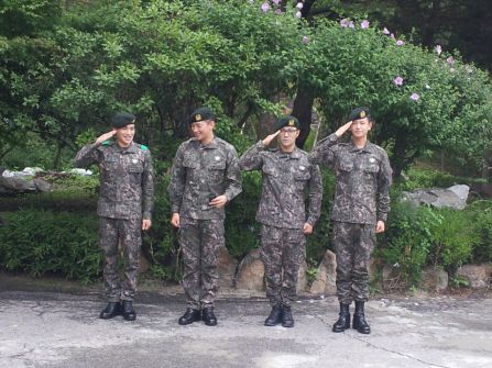 In this promotional video from the ArmyFest site, PFC Jung JiHoon (Rain), Kang ChangMo (KCM), Im JooHwan, and Jo JungIk (actor Yoo Geon), join singing group Brave Girls in inviting one and all to the 2012 Ground Forces Festival on October 10-14, 2012. ^@@^