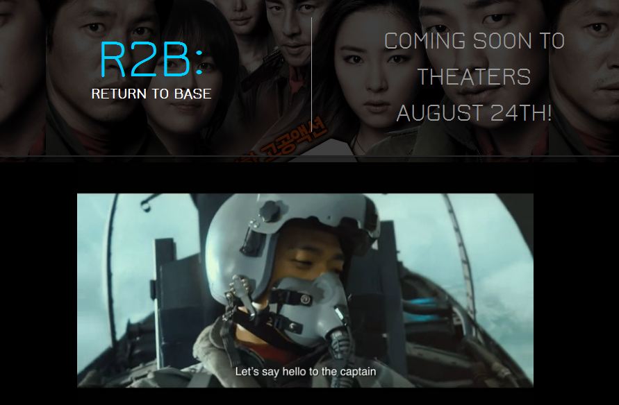 R2B: Return to Base is 1 hour and 53 minutes long and, according to AMC, not rated in the U.S.A. (NR, MPAA). It is rated 15+ in Korea, according to CJ Entertainment America. Show times are: 10:30 am, 1:20 pm, 4:10 pm, 7:00 pm, and 9:50 pm.
