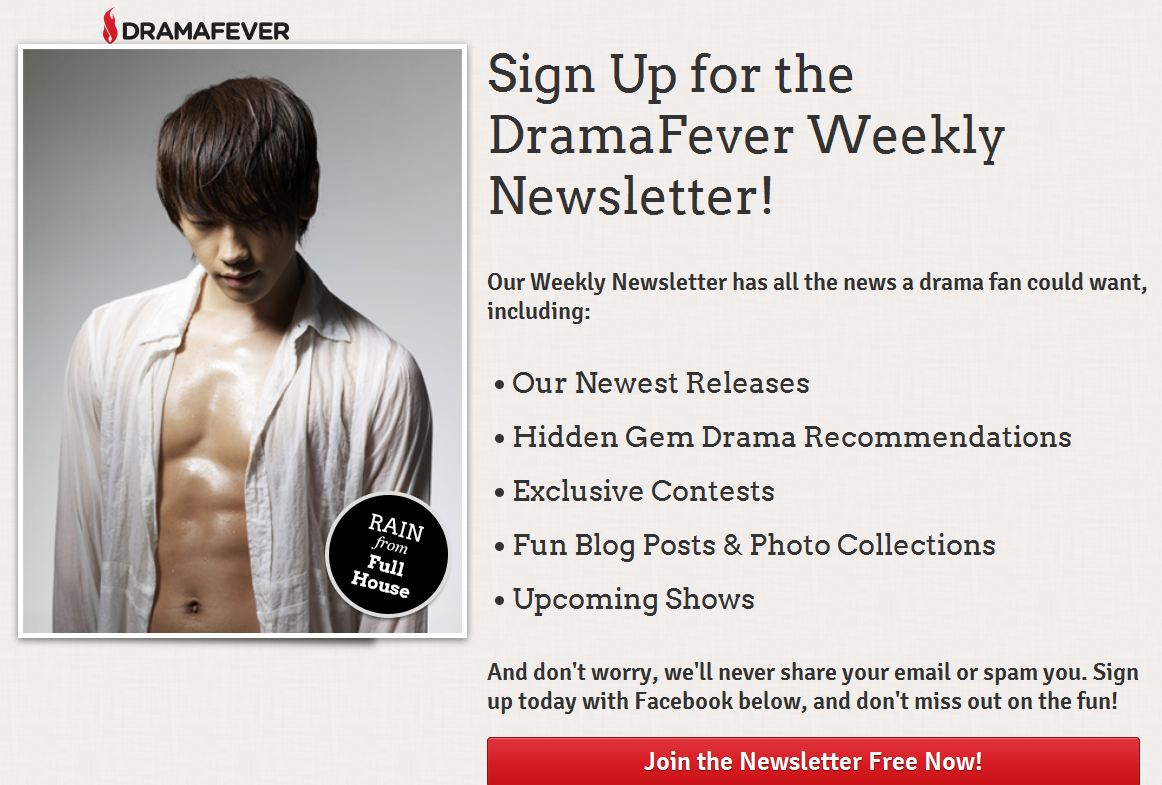 DramaFever has a pretty nifty newsletter too, so sign up for all the Asian drama news and fun you could ever want! We’re just tickled that they used Rain in his Nature Republic glory for their latest newsletter ad. Smart folks! 🙂 ^@@^