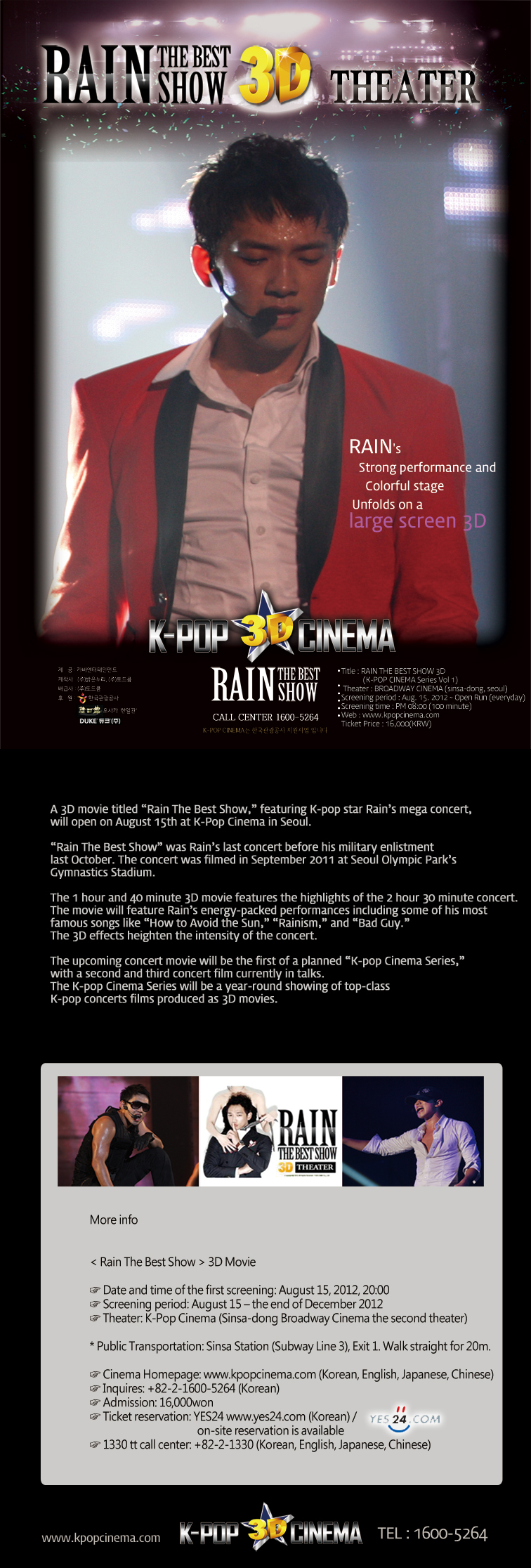 ^@@^ [KPOP CINEMA] RAIN The BEST SHOW 3D MOVIE TRAILER. (Source credit: » www.kpopcinema.co.kr / courtesy of GregoryMovie @YT)