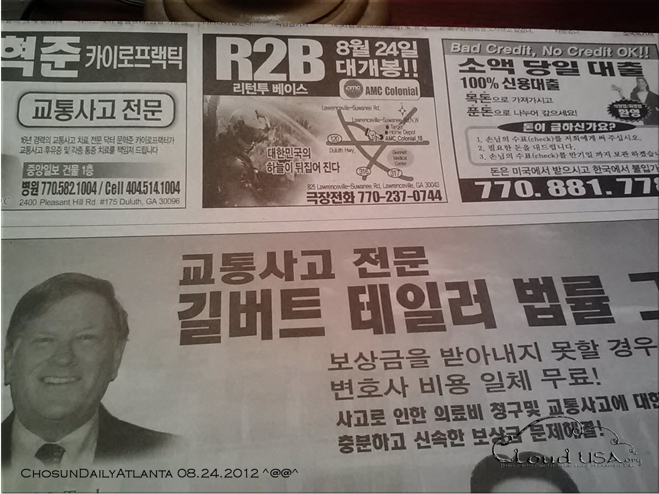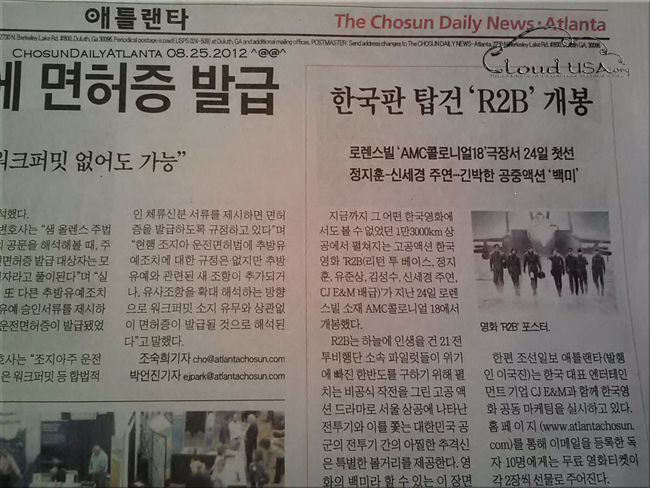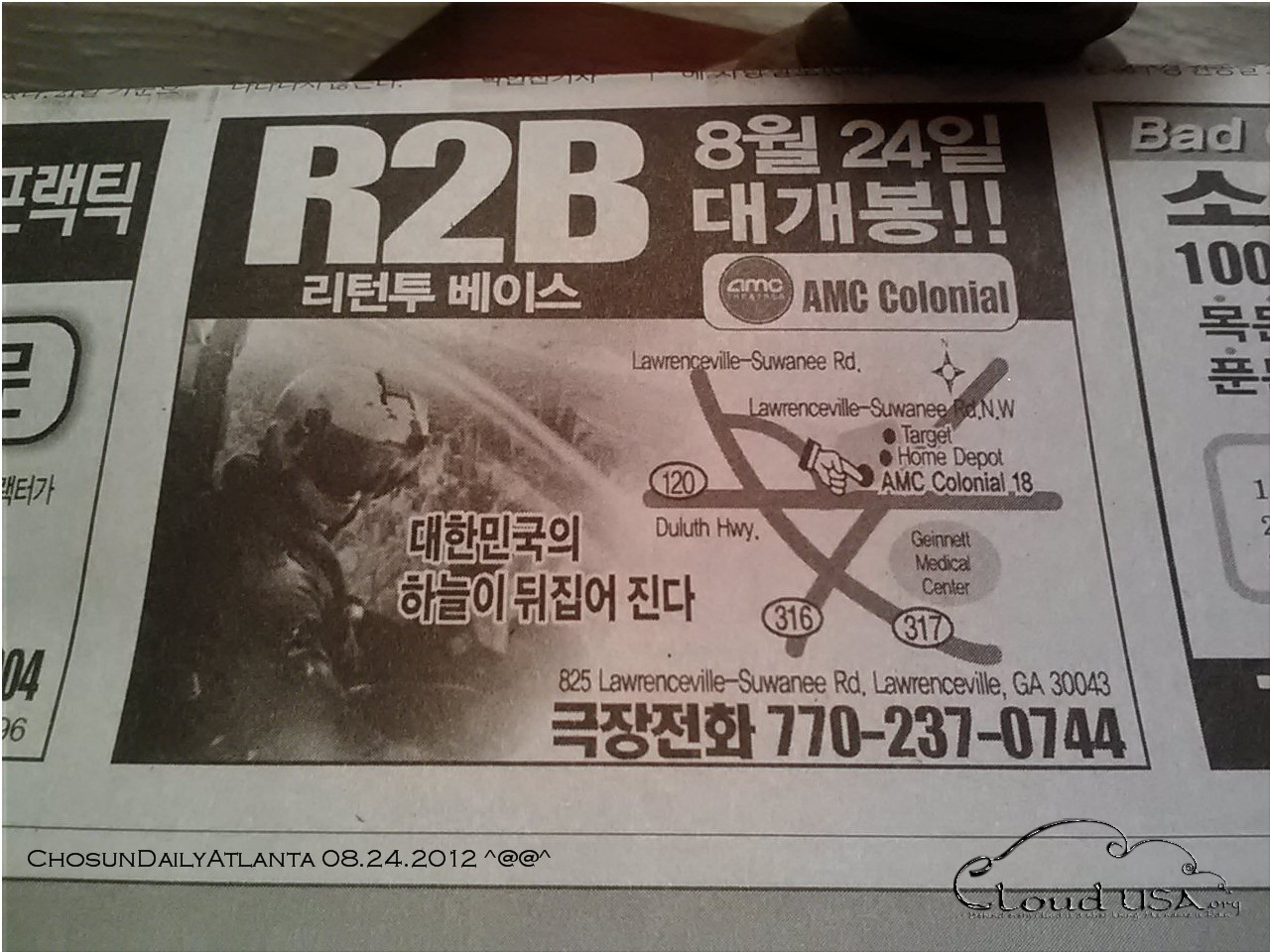 (The R2B article and ads that came out in the Chosun Daily News Atlanta on Friday and Saturday. The newspaper has kept articles about the movie on the front page practically every single day, and we really appreciate that. ^@@^)