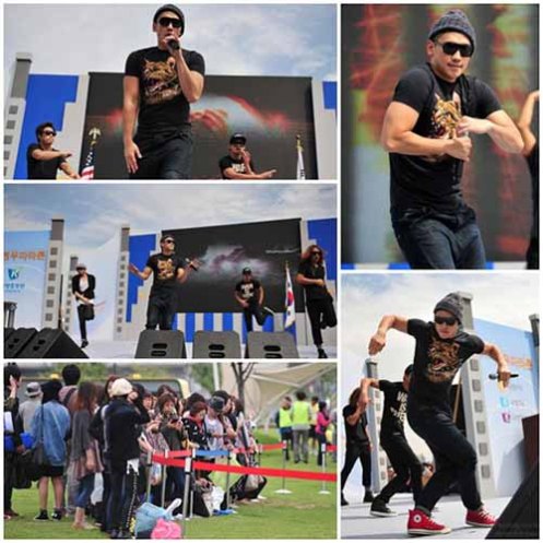 Rain performed alongside his fellow PR agents, including Yoo Gun, Untouchable′s Sleepy and D-Action and KCM. Rain only performed onstage without running for the actual marathon.