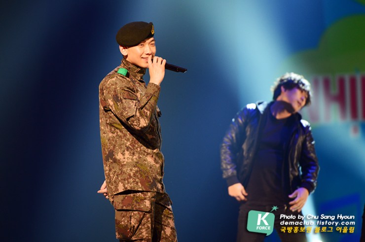 [fan cam/quick clip][images][Eng trans] More Rain at the Friendship Bridge military concert in Seoul. (3/20)