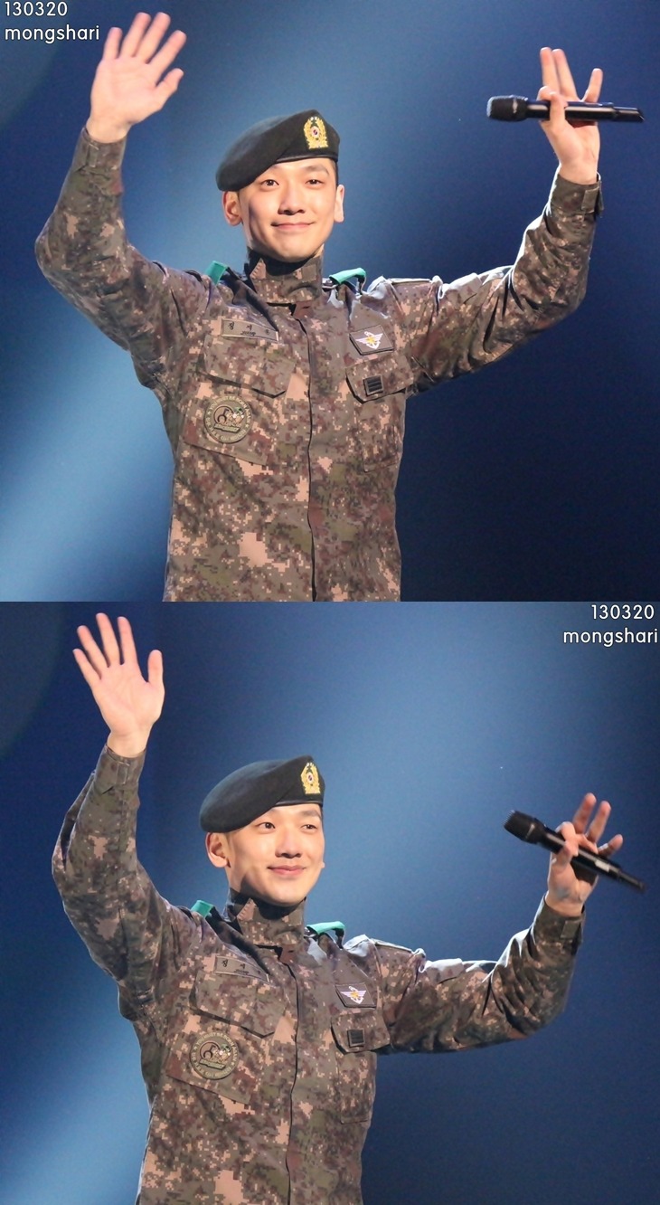 [fan cam/quick clip][images][Eng trans] More Rain at the Friendship Bridge military concert in Seoul. (3/20)