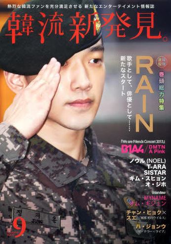 Japanese magazine Korean New Discovery (韓流新発見。) for September 2013, featuring Rain.