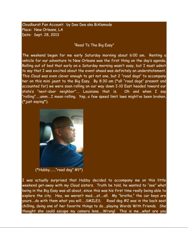 [Cloudburst account] BiAlamode’s POV: Road To The Big Easy.