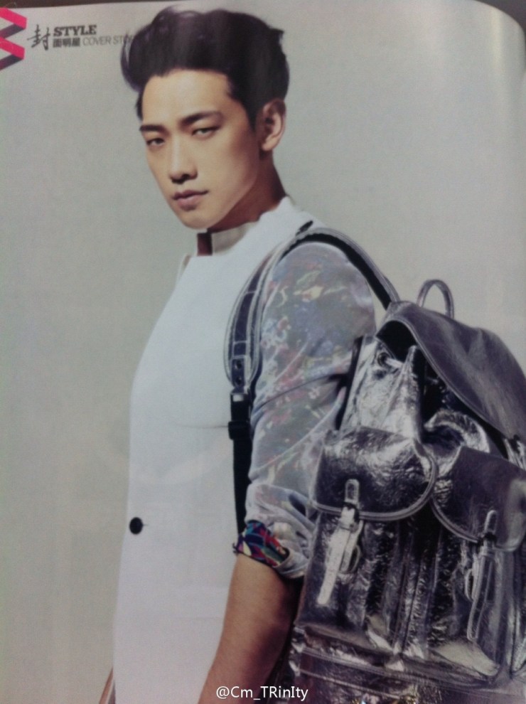 [images] Rain wears MCM on the cover and inside of Harper’s BAZAAR Men, March 2014.
