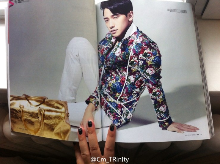 [images] Rain wears MCM on the cover and inside of Harper’s BAZAAR Men, March 2014.