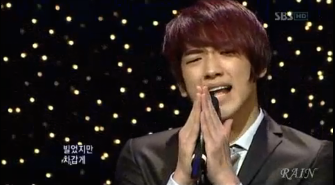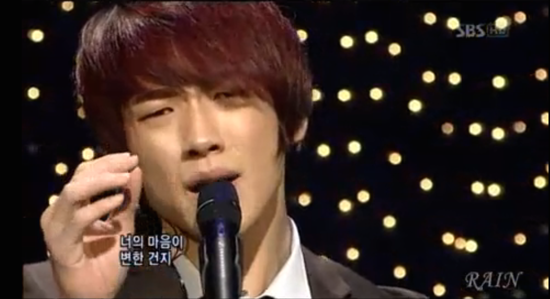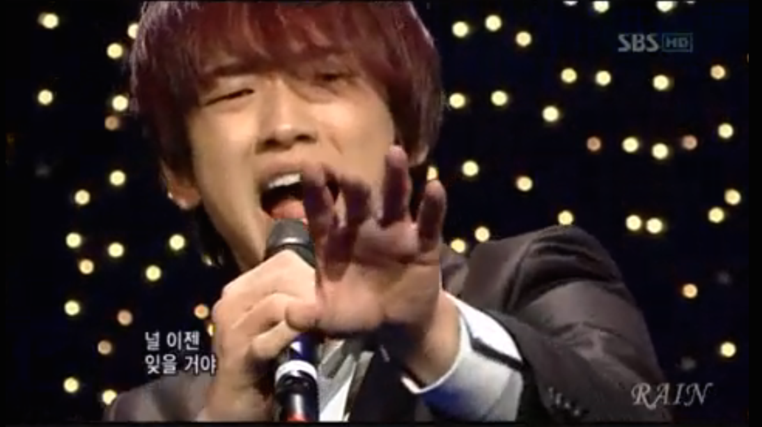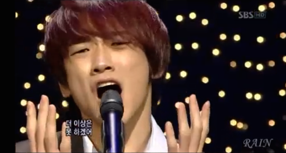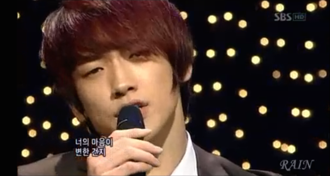 Rain had already been making the rounds with both Love Story and Rainism before he came to Inkigayo. Where Rainism is basically shouting “I’m THE MAN!!,” Love Story is achingly pleading, “I was your man and I still want to be your man, please let me be your man again.” The dichotomy of these two songs is evident. The fact that Rain released them both as singles, brilliant.