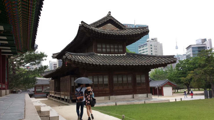 He was protecting her from the rain. So sweet. (Or rather I like to think that was what he was doing. :-})