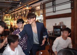June 4: Rain arriving at YG Entertainment CEO Yang Hyun Suk’s new restaurant launch in the Hongdae area of Seoul, and being greeted by co-owner Noh Hee Young (also in black glasses). Also, Rain with actress Ko So Young (Mrs. Jang Dong Gun!!!) and restaurant co-owner Noh. (Images: Noh Hee Young / hino2033 / as tagged)