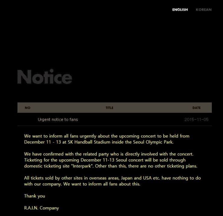 [info][article][notices] Rain’s “The Squall” Korea concerts, in the news and on his websites.
