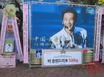 Rain arrives in front of his official Cloud’s massive rice garland and briquette wreath. (Credit: meiacrbon)