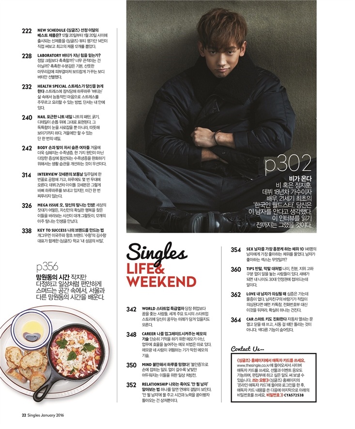 [cover][8 images][video] Rain is coming down on Singles Korea 싱글즈 Magazine’s first issue for 2016.