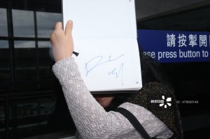 Rain looked pretty happy and content as he signed a Rain Effect Repackage album book, an iPhone case, and a few other things on the way to his car at Hong Kong International Airport. An unfortunate lady fell in the bedlam and he tried to help her up. (She didn’t appear to have been hurt, thank goodness.) ^@@^