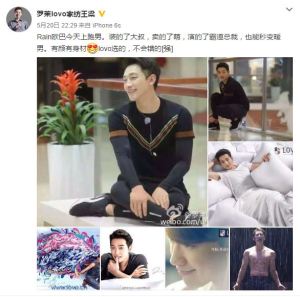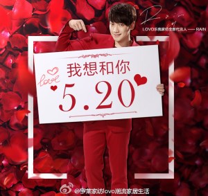 5/18. Rain for LOVO Home. They also posted about his Running Man China stint on their Weibo. I love sponsors like this, that support the other things that their spokespeople do! 🙂 ^@@^ (Credit: LOVO官方微博 / 罗莱家纺lovo潮流家居生活)