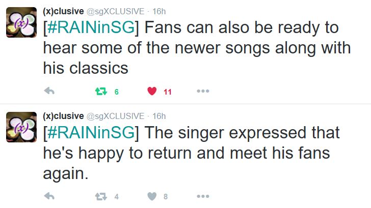[25 tweets][3 pics][1 vid] Tweets abound: Things Rain talked about at his Squall Singapore press con. (12/29)
