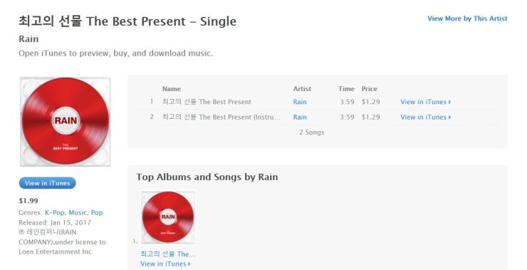 [info] We’re in digital heaven — Rain’s “The Best Present” is now on iTunes! (1/15)