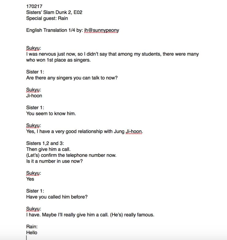 [8 vids][Eng trans][blasts] Rain’s hyung gives him a call on Sister’s Slam Dunk! (2/17) (We miss you, SangQ!)