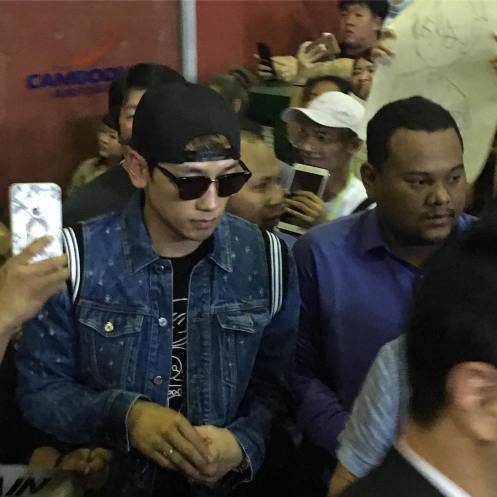 Men, women, and children fans were there en masse when our fashion plate arrived at Phnom Penh International Airport wearing Givenchy (thanks to lingshyu66 and sunnypeony for that tip) and his brand new Nike Air VaporMaxes. Pandemonium ensued! What a welcome! 😀
