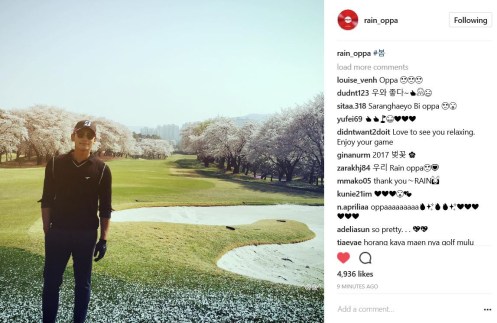 4/21. 비 wants you to see this gorgeous golf course in bloom, on his Instagram. Wow! Sooo pretty. He just posted a few minutes ago, and simply hashtagged #spring^@@^ (Caps: Stephe @ CloudUSA)