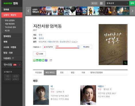 FYI: Rain’s new movie Bike King Uhm Bok Dong (자전차왕 엄복동, I have no idea where Google gets “Byeongbok Dong” from…) has an official Naver page in South Korea HERE (thanks for the tip, sunnypeony). So, fans who can log-in on Naver (think of Naver as a Korean Google or Yahoo) make sure you go over and heart the movie, like it, give it some love! Okay? Thumbs up. ^@@^
