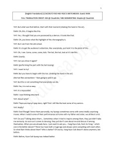 The full translation shared at the end of this post coordinates with the full Youku clip HERE and starts 5:10 minutes in, and includes 6 minutes of conversation not released on YouTube.