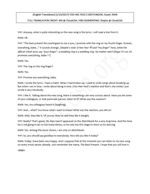 [5 videos][full clip][Eng trans] Rain’s The Best Present interview on YHY’s Sketchbook. (1/14/2017)