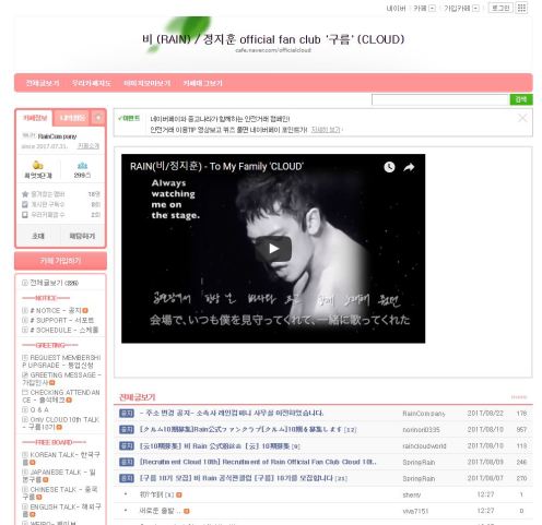 2. Write 5 posts. You can write your post in any room within the FREE BOARD area: Korean Talk, Japanese Talk, Chinese Talk, English Talk etc. and in whatever language you prefer. You can share news about Rain and there is no need to upload any photo or video. Or you can just write a short post like “Glad to join 10th Cloud. Happy to be here” “Welcome to the Cloud 10 family”, “Rain, love and support you forever”….. etc. Again the system will log your posts automatically.