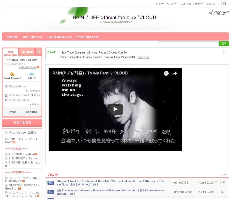 [tutorial][Eng trans] From Stephe’s desk: Signing up for Rain’s official Cloud 10 fan club, now on Naver Cafe.
