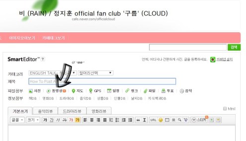 A) This first tab lets you do so by actually uploading the video yourself from either the hard drive of your computer (GREEN button) OR from your personal storage in the “Internet” Cloud (BLUE button). When you click on the green button, it opens your files on your computer so you can upload to Naver yourself. (I haven’t done this in the Cloud Cafe yet, but I have done it on my new Naver blog and it worked like a charm!)