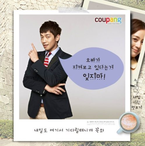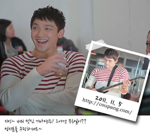 (When Rain tweeted this image back on 10/10/2011, the day before he enlisted, we thought he might be in a barber shop, maybe getting his Army haircut… but no! He was doing his thing for new sponsor Coupang with actress Kim Tae Hee, before she became his girlfriend and his wife! They were the new faces of the company, sooo cute.^^ SCROLL DOWN for more. BTW… the concert he’s talking about here was his Last of The Best street concert in Gangnam on 10/9. The city had to close off seven lanes of traffic for that thing! ^@@^)