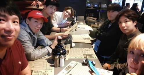 Taking a load off at the Karl Strauss Brewing Co. in downtown L.A. Thanks, Crew man YongDuk!^^ (Image credit: dduks1225 @ IG)