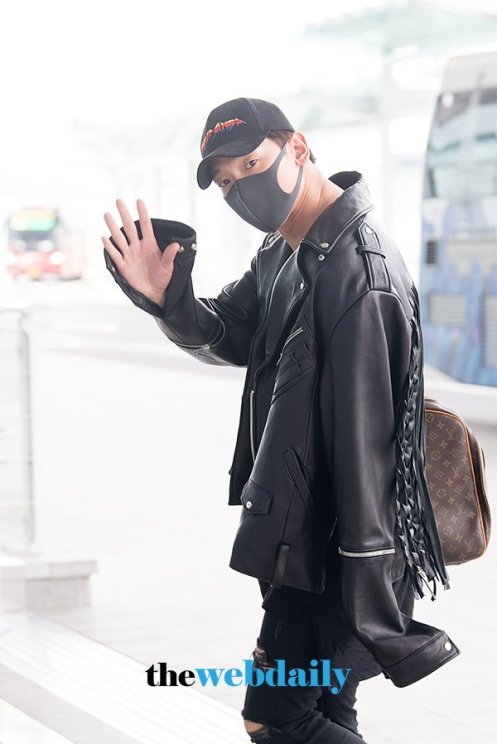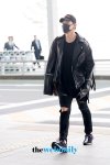 4/26. Leaving Seoul via Incheon International Airport in charismatic, all black airport fashion. Now I can see why the Media was going crazy about our fashion plate’s outfit — that jacket is AMAZING, especially in the back. Luuurve it! ^@@^ (News clip source credit: Liveen TV News / 라이브엔liveen @ YT.)