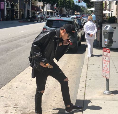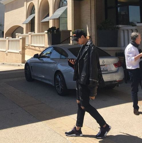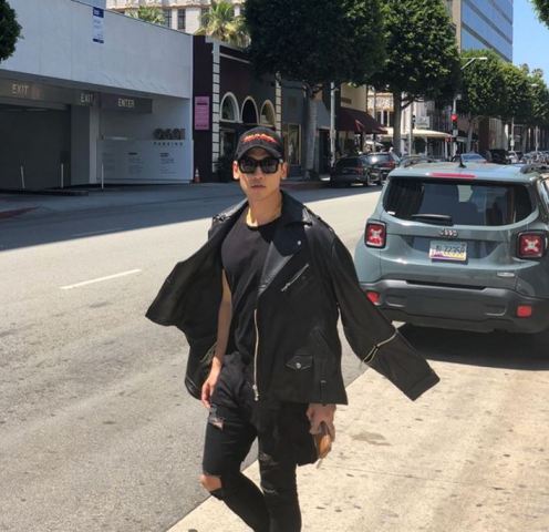 4/28. He posted these pics on Instagram around 6 hours ago. It’s been Raining on the streets of L.A. hehe~ ^@@^ (Images credit: rain_oppa @ IG)